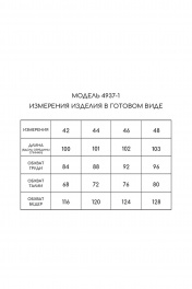 Платье на бретелях, без рукавов и воротника, с застежкой на потайную молнию в среднем шве спинки. Платье отрезное по линии талии. Лиф переда состоит из двух деталей, верхняя часть лифа с перекрученными деталями и отрезной нижней частью. Лиф спинки состоит из двух деталей, боковая деталь спинки присборена резинкой. Нижняя часть платья расклешенная.