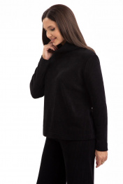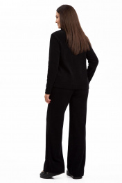 Джемпер с втачным воротником-стойкой и втачными рукавами. Брюки широкие с отрезным поясом, в пояс вставлена резинка.На переде пояса выметаны петли и вставлен шнур. Силуэт: прямой