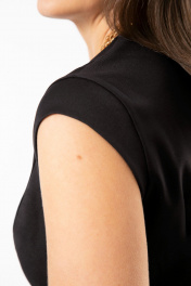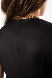 Жакет прямого силуэта, с центральной застежкой на пришивной крючок, отложным воротником и лацканами пиджачного типа. По переду с рельефами, выходящими из проймы, талиевыми вытачками. Спинка со средним швом, рельефами, выходящими из проймы. Рукав втачной, длинный. Платье с застежкой на потайную молнию в среднем шве спинки, без воротника, с круглым вырезом горловины. По переду с рельефами, выходящими из проймы. Левый рельеф заканчивается разрезом. Спинка со средним швом, рельефами, выходящими из проймы. Рукав- крылышко. Жакет на подкладке.