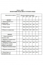 Жилет с центральной застежкой на петли и пуговицы, без воротника, с V-образным вырезом горловины. Горловина и край борта декорированы бахромой из основной ткани.. По переду с нагрудными вытачками. Спинка с талиевыми вытачками. Брюки- с отрезным поясом, на поясе расположены шлевки. По спинке пояс присборен на резинку. По боковым швам расположены карманы. Вход в карман наклонный к боковому шву. Застежка гульфик.