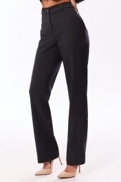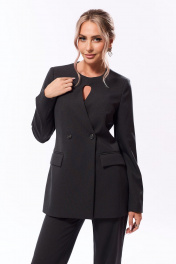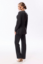 Жакет полуприлегающего силуэта, с центральной двубортной застежкой на петли и пуговицы, и потайной молнией по среднему шву спинки, без воротника, с круглым вырезом горловины, и фигурным вырезом- капелькой на уровне груди. По переду с рельефами, выходящими из проймы, талиевыми вытачками, прорезными карманами с клапанами и двумя обтачками. Спинка со средним швом, рельефами, выходящими из проймы. Рукав втачной, длинный. Брюки с отрезным поясом. В области спинки пояс присборен на резинку. Передние половинки с карманами, вход в карман наклонный к боковому шву. Застежка гульфик. Жакет на подкладке