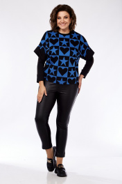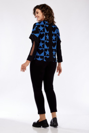 Женское платье из трикотажа с кожзамом, с нагрудными вытачками Grace for you 156 черный+синий