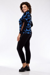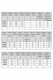Жилет: вискоза-60%, ПЭ -35%, лайкра 5%. Брюки: вискоза-60%, ПЭ -35%, лайкра 5%. Джемпер: вискоза-60%, ПЭ -35%, лайкра 5%. Отделка сетка: ПЭ -100%.