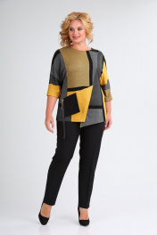 Этот комплект поможет выделится из толпы любой красавице, подчеркнуть свой неподражаемый вкус, а также спрятать некоторые недостатки своей фигуры. Асимметрия и принт- все это прекрасно работает на любой тип фигуры. А также он идеально будет смотреться на леди любого возраста, Длинна джемпера по середине спинки от горловины 68 см (+/-2см). Длина спущенного рукава от горловины 52 см (+/-2см). Длина брюк по боковому шву от пояса 96см (+/-2см). Параметры в 52-м размере: ОГ - 116 см, обхват низа -116 см в джемпере, ОТ - 97 см, ОБ 110 см в брюках Параметры в 54-м размере: ОГ-120 см, обхват низа - 120 см в джемпере, ОТ-101 см, ОБ-114 см в брюках; Параметры в 56-м размере: ОГ-124 см, обхват низа 124 см в джемпере, ОТ-105 см, ОБ-118 см в брюках.