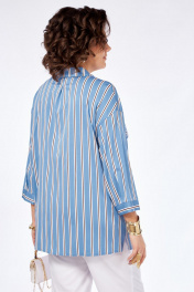 Комплект женский 2-х предметный, состоящий из рубашки и брюк. Рубашка: прямого силуэта, с центральной бортовой застежкой на петли и пуговицы, со спущенным плечом. Перед с отрезной кокеткой, накладными карманами и клапанами. Спинка без среднего шва, с встречной складкой, идущей от горловины. Рукава 3/4 с отрезной манжетой. Воротник рубашечный, с отрезной стойкой Брюки: полуприлегающего силуэта, на поясе с резинкой. Передняя часть брюк со складками, идущими от пояса с наклонными карманами. Задняя часть брюк без вытачек. По низу брюк вставлена резинка.