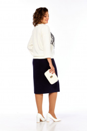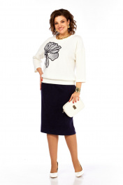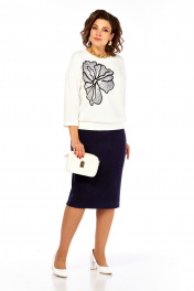 Этот модный, теплый, мягкий трикотажный комплект, подарит Вам тепло и уют. Удобный джемпер прямого силуэта со спущенным плечом. Перед без нагрудных вытачек, с правой стороны переда расположена дизайнерская вышивка в виде цветка. Спинка без среднего шва. Горловина обработана бейкой. Рукава ¾. По низу изделия пояс. Юбка на поясе с резинкой, по переду пояса планка, заднее полотно юбки без среднего шва. Юбка без разрезов, без подкладки.