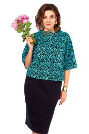 Комплект 2-ка, женский, состоящий из джемпера и юбки, благодаря экстравагантной расцветке джемпера, придаст Вашему стилю изюминки. Юбка имеет слегка подтягивающий эффект для фигуры. Этот комплект разработан с учетом различных типов женских фигур. Джемпер прямого силуэта, со стоячим воротником и укороченным рукавом реглан. По переду джемпера нагрудные вытачки, идущие из боковых швов к центру груди. По спинке джемпера средний шов. В верхней части шва вставлена потайная тесьма - " молния". Юбка без подкладки прилегающего силуэта. В верхней части юбки широкий притачной пояс с резинкой. По бокам юбки лампасы из плащевой ткани, что визуально вытягивает силуэт.