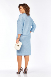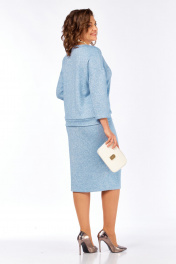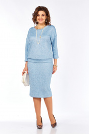 Этот модный, мягкий трикотажный костюм подарит Вам тепло и уют. Ткань с мягким мерцанием люрекса представлена в 2 расцветках – голубой и мята. Будет прекрасным нарядом на праздники или торжественные мероприятия. Удобная кофта свободного силуэта со спущенным плечом. Перед без нагрудных вытачек, спинка без среднего шва. Горловина обработана бейкой. Рукава ¾. По низу изделия притачной пояс. Юбка зауженная к низу, на поясе с резинкой, по переду пояса планка, заднее полотно юбки без среднего шва. Юбка без разрезов, без подкладки.