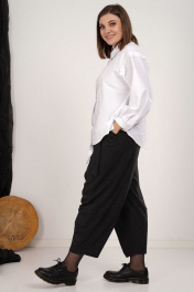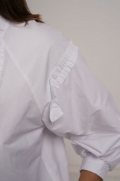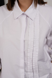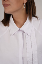 Модная рубашка для женщины удобная и практичная. Эта легкая рубашка - OVERSIZE может быть альтернативой нашей классической хлопковой рубашке. Модель прямого силуэта,слегка расширена к низу. Длинный свободный рукав реглан, внизу рукава бантовые-складки, придающие рукаву объем, рукав заканчивается манжетой, застегивающейся на пуговицу. Необычность рубашки придает двойной воротник рубашечного типа на отрезной стойке. Застежка центральная с потайной пуговичной планкой, на левой половинке декоративный элемент две вертикальные рюши чуть длиннее изделия, еще один декоративный элемент горизонтальная рюша на левом рукаве. Рекомендуем дополнить образ женскими брюками любого кроя из коллекции нашего бренда. Модель выполнена из приятной к телу ткани состав хлопок 80%, пэ 20% . Рост модели 173, размер на модели 52.