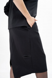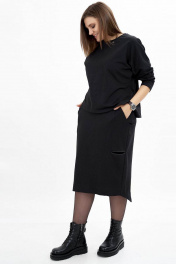 Осень – самая подходящее время для трикотажа. Тепло, комфортно, стильно. Трикотажная юбка прямого кроя, пояс на широкой эластичной резинке, два кармана с отрезным бочком и на задней половинке один карман обманка с листочкой. Универсальная длина миди, которая идёт практически каждой девушке, горизонтально к боковым швам два обработанных разреза и сзади кокетливый разрез. А также юбка прекрасно сочетается с свитшотами, футболками из коллекции бренда GRATTO На фото юбка со свитшотом модель 4135.