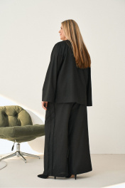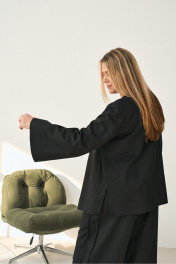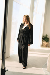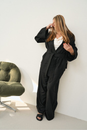 Костюм в японском стиле «кимоно + палаццо» — это сочетание эстетики, комфорта и актуального тренда сезона. Выполнен из лёгкой ткани лен с добавлением вискозы, благодаря чему изделие приятно к телу, хорошо дышит и комфортно в носке даже в тёплую погоду. Свободный фасон обеспечивает удобство и не сковывает движения, а жакет без застёжек фиксируется поясом, позволяя регулировать посадку. Широкие брюки с аккуратными боковыми строчками создают аккуратный и вытянутый силуэт, а расширенные книзу визуально балансируют пропорции и добавляют образу лёгкости и изящества. Костюм идеально подойдёт для повседневных образов, прогулок, отдыха и городских выходов. Универсальный стиль позволяет легко сочетать его с разной обувью и аксессуарами, создавая как расслабленные, так и более собранные образы.