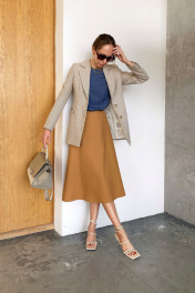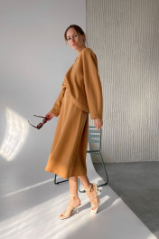 Юбка А-силуэта длиной миди, высокой посадкой( на обтачке) В боковых швах -карманы. Застежка сзади на потайную молнию. Юбка на подкладке, выполнена из мягкой, приятной к телу ткани джерси- 100% шерсть. Модель на фото размера S, рост 172 см, размер комплекта S. — Стирать вручную при температуре воды до 30°C; — Гладить при низкой температуре; — Не отбеливать; — Барабанная сушка запрещена; — Сушить на горизонтальной плоскости в расправленном состоянии; — Сухая чистка (химчистка). Стирать с использованием нейтральных моющих средств. Избегать длительного замачивания, чрезмерного трения с сумками и другими аксессуарами, поскольку это может привести к образованию пилинга. Обхват талии: XXS – 64 см, XS – 68 см, S – 72 см, M – 76 см, L – 80 см. Длина изделия сбоку с учетом пояса – 74 см. * XXS-40р., XS-42р., S-44р., M-46р., L-48р.