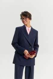Полуприталенный двубортный жакет неподвластен времени, и никогда не выйдет из моды. Такой классический пиджак будет актуален как в классических образах, так и в вечерних стилизациях. Костюмная ткань средней плотности с содержанием шерсти не колется благодаря гладкой подкладке, при этом хорошо держит тепло. — Полуприталенный крой — Длина до середины бедра — Застежка на пуговицы — Боковые карманы с клапанами — Подплечники — Сзади 2 шлицы — Манжеты на пуговицах — В комплекте запасная пуговица — Изделие на подкладке Носите в комплекте с брюками из аналогичной ткани в тон, чтобы создать монохромный total look. Обхват груди: ХS/42 – 92 см, S/44 – 96 см, M/46 — 100 см, L/48 – 104 см, XL/50 – 108 см. Обхват талии: ХS/42 – 82 см, S/44 – 86 см, M/46 – 90 см, L/48 – 94 см, XL/50 – 98 см. Обхват бедер: ХS/42 – 92 см, S/44 – 96 см, M/46 — 100 см, L/48 – 104 см, XL/50 – 108 см. Ширина плеч: ХS/42 — 41 см, S/44 — 42 см, M/46 — 43 см, L/48 — 44 см, ХL/50 — 45 см. Обхват рукава вверху: ХS/42 — 33 см, S/44 — 34 см, M/46 — 35 см, L/48 — 36 см, ХL/50 — 37 см. Длина изделия по среднему шву спинки без учета воротника – 71 см (Рост 170 см). Длина рукава – 61 см (Рост 170 см). — Не стирать — Гладить при температуре утюга до 110°C — Не отбеливать — Сухая чистка (химчистка) — Барабанная сушка запрещена.