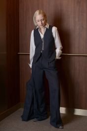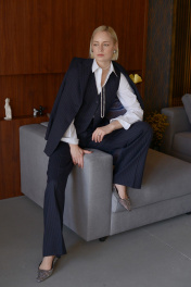 Классический жилет станет изящным элементом базового гардероба. Рекомендуем несколько вариантов стилевых решений: носите жилет соло в качестве топа, в комплекте костюма-тройки или поверх рубашки. Костюмная ткань с шерстью не деформируется и обеспечивает комфорт в повседневной носке. Хлястик с пряжкой позволяет отрегулировать удобную посадку. – Приталенный крой – Застежка на пуговицы – V-вырез – Боковые карманы с листочкой – На спинке регулирующий хлястик с пряжкой Модель на фото размера 44/S, рост 170 см, размер жилета 44/S. - Деликатная ручная стирка при температуре воды до 30°C - Гладить при температуре утюга до 110°C - Не отбеливать - Барабанная сушка запрещена - Сухая чистка (химчистка)