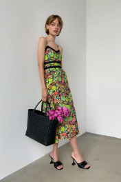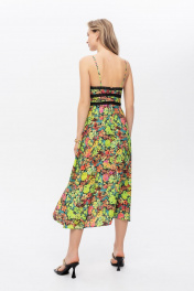 Нежное платье длины миди полуприлегающего силуэта, выполненное из шелковистой вискозной ткани, вставки из хлопкового кружева. Модель на фото размера S, рост 172 см, размер платья S. Если вам требуется дополнительная информация или помощь в выборе подходящего размера, свяжитесь с нами – Деликатная ручная стирка при температуре воды до 30°C; – Гладить при температуре утюга до 110°C; – Не отбеливать; – Барабанная сушка запрещен