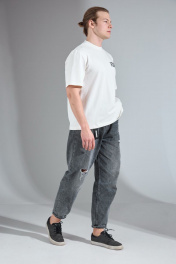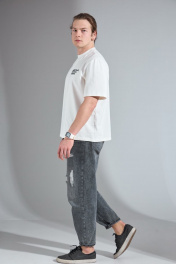 Трикотажный oversize майка с вышивкой и тесьмой HIT 0209/1 белый