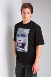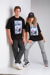 Футболка unisex выполнена из хлопкового трикотажа, благодаря чему очень приятна к телу. Изделие универсального прямого силуэта свободного кроя. Благодаря прямому крою футболка отлично подходит разным типам фигур, хорошо сидит и не стесняет движений. Вырез горловины круглый с притачной планкой, низ футболки и рукава подгибка закрепленная распошивочным швом. По переду индивидуально разработанная сублимация на флоке с ярким принтом, благодаря которой Ваш образ станет неповторимым.. Футболка с коротким рукавом прекрасно подходит мужчинам и женщинам. Парная футболка –отличный вариант для всей семьи и фэмили лука. Длина от горловины по спинке 66 +-1 см., длина рукава от плечевого шва 27 +-1 см. Рост модели на фото 182 см, размер L (50).