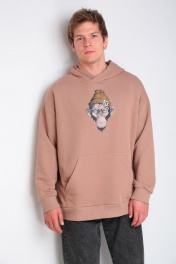 Бежевый oversize худи с принтом и капюшоном HIT 0216/1 бежевый