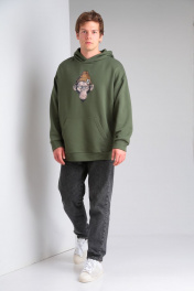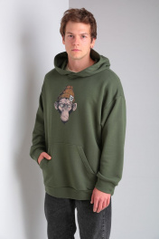 Худи на каждый день из трикотажа и хлопка, зеленое, oversize HIT 0216/1 хаки