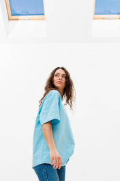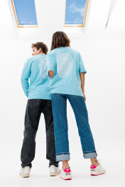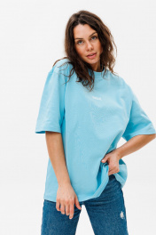 Голубой трикотажный свободный джемпер с принтом HIT 0224ж голубой