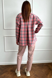 Платье с кокетками и сборками из хлопка и текстиля i3i Fashion 202/1 лососевая_клетка