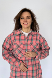 Стильная хлопковая блузка-рубашка в клетку с отделкой из джинса на кнопках, с карманами. Длина - середина бедра, с разрезами по низу боковых швов.