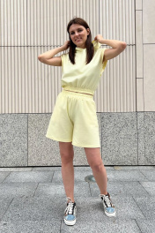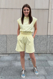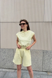 Костюм джемпер и шорты из хлопка с капюшоном i3i Fashion 406/2 желтый