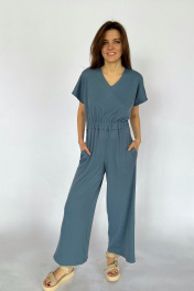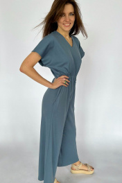 Комбинезон с V-образным вырезом и резинкой по талии i3i Fashion 800/1 синий