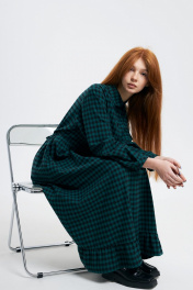 Платье прямого силуэта из мягкой фланели с оборкой Individual design 24241 клетка/зеленый