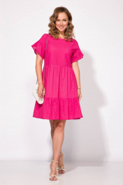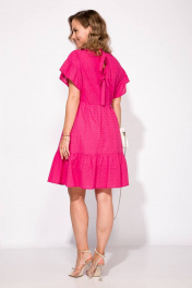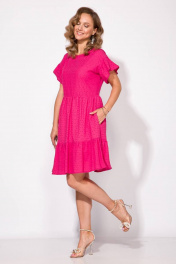 Супер стильное платье в оттенке зеленого яблока и фуксии- ХИТ этого лета! Модель выполнена из хлопка с вышивкой ришелье! Модель отрезная по линии талии, с присборенными ярусами по переду и спинке. Боковых участках есть карманы. Спинка с эффектными бантами завязками, переходящими в разрез. От талии платье на подкладке!