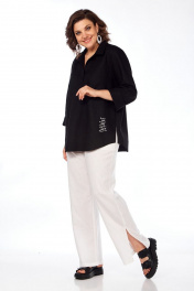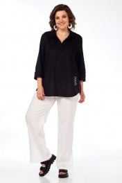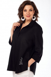 Летняя льняная блуза свободного силуэта стиль На каждый день INVITE 1051 черный - фото 4