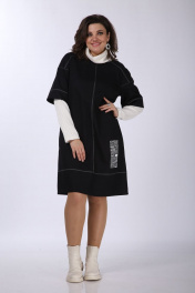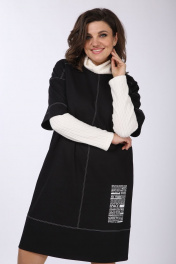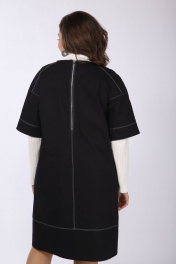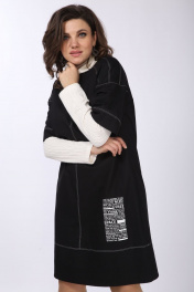 Платье женское прямого силуэта. Спущенная линия плеча, рукав до локтя. Разрезная спинка с застежкой на декоративную тесьму-молнию. По переду выполнена термопечать. Длина рукава - 43см от горловины, длина изделия - 100см Модель из джинсовой ткани.