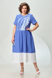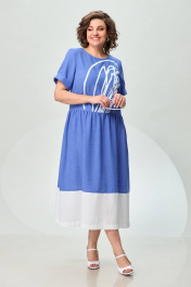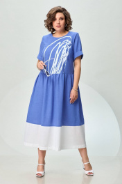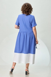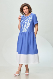 Платье из льна с сборкой и карманами из отделочной ткани INVITE 4071 голубой+белый