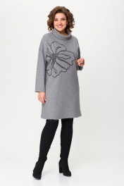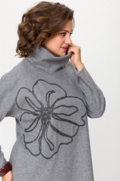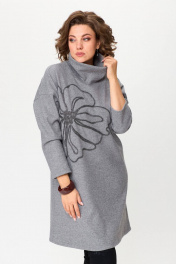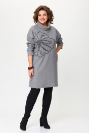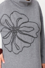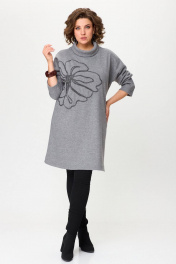 Серое платье свободного силуэта из трикотажа с вышивкой INVITE 4081