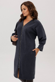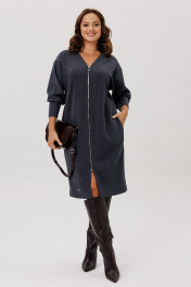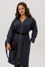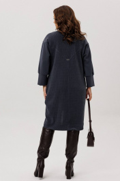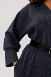 Платье полуприлегающего силуэта, вырез горловины V – образный, рукав цельнокроеный спущенный со вставками из кожи и на манжете внизу. По спинке кокетка, в боковых швах функциональные карманы. Застежка на тесьму-молнию. В комплекте ремень из экокожи. Длина рукава в 48-52рр – 43см, в 54-58рр – 44см, ширина плеча – 20см, длина изделия в 48-52рр– 103см, в 54-58рр – 108см.