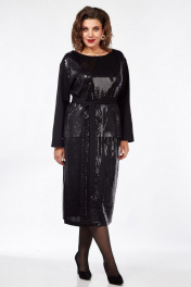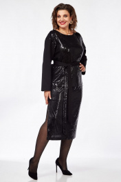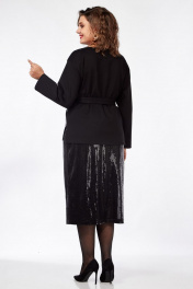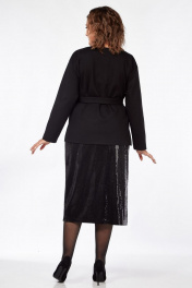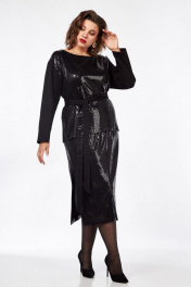 Костюм женский состоящий из прямого джемпера и юбки в пайетки. Джемпер прямого свободного силуэта, выполненный из трикотажного полотна и ткани с пайетками, со спущенной линией плеча, вырез горловины «лодочка», по боковым швам – разрезы, высотой 11см. Рукава втачные, прямые. Перед джемпера из ткани в пайетки. Спинка джемпера из трикотажного полотна. В комплекте идет пояс – двухсторонний – одна сторона из ткани с пайетками, другая из трикотажного полотна. Длина рукава - 55см, ширина плеча - 13см, ширина рукава по низу – 14,5 см, длина изделия - 67см Юбка женская, длинная, прямого силуэта, выполненная из ткани в пайетки на трикотажной подкладке. Пояс юбки на резинке. В боковом шве с одной стороны - разрез. Длина изделия с учетом ширины пояса (ширина пояса 4 см) 78см, высота разреза от низа 40см.