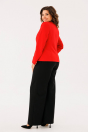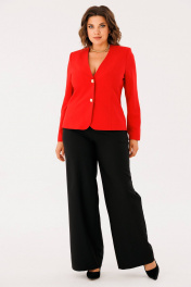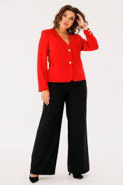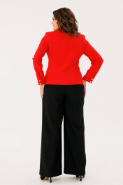 Костюм женский состоящий из блузы и брюк. Жакет прилегающего силуэта, вырез горловины V-образный, рукав втачной двухшовный. Застежка на петли-пуговицы. Изделие на подкладке. По переду и спинке рельефы. Брюки палаццо на резинке по талии без застежки. В боковых швах карманы. Длина рукава жакета – 62см, ширина плеча – 13см, длина жакета – 60см Длина брюк – 108см с учетом ширины пояса.