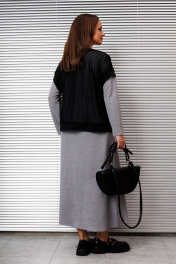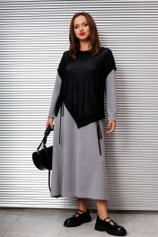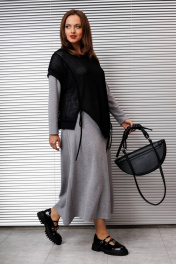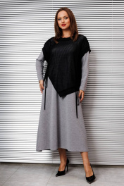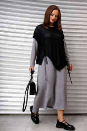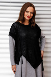 Комплект женский состоящий из жилета и платья. Жилет свободного силуэта из ажурной сетки с асимметричным низом и декоративными завязками по бокам. Платье свободного силуэта, вырез горловины округлый. Рукав втачной, длинный. Изделие без застежки.