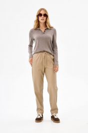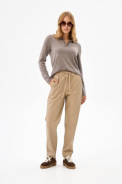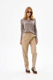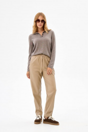 Брюки бананы из экокожи с высокой талией IUKONA 1002 бежевый