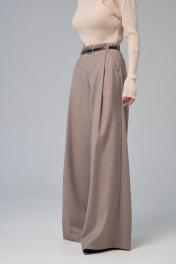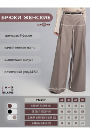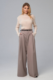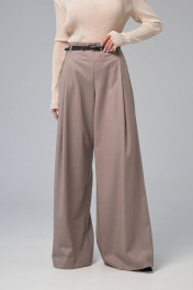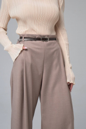 1. Брюки женские широкие палаццо с высокой талией. 2. Застежка в боковом шве на потайную молнию. 2. На передних частях по линии талии выполнены модельные складки. 3. На спинке брюк обработаныконструктивные вытачки. 4. Длина шагового шва-87 см. 5. Для фиксации талии предусмотрен ремень из экокожи. 6. Бережная стирка при 30 градусах.