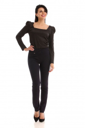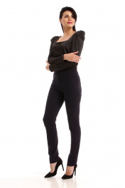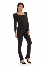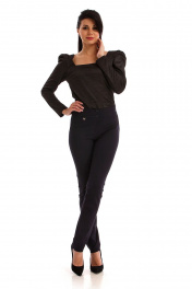 Брюки женские. Облегающего силуэта, без подкладки. Без застежки, выполнена имитация. Пояс спинки обработан резтнкой. На передних и задних карманах обработаны нефункиональные карманы. Длина шагового шва-80см. Бережная стирка при 30 градусах.