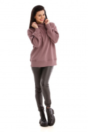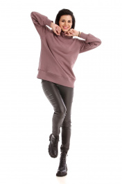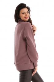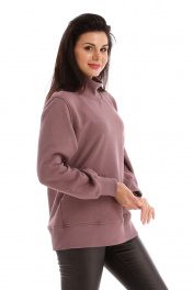 Джемпер женский, свободного кроя. Воротник стойка. Рукав длинный, заканчивается манжетой, линия плеча спущенная. Спинка цельнокроенная, низ изделия заканчивается манжетой. Длина центра спинки -67 см. Бережная стирка при 30 градусах.