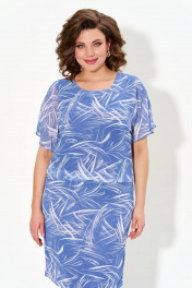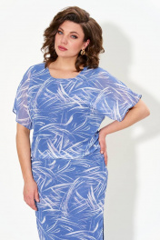 Платье приталенное из шифона с разрезами и поясом IVA 1469 синий