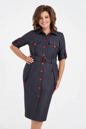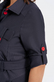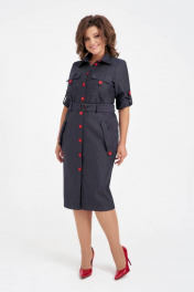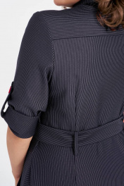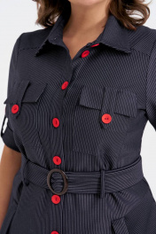 Платье женское полуприлегающего силуэта выполнено из высококачественного трикотажа. По переду изделия функциональные накладные и прорезные карманы, застежка на петли и пуговицы, рукава втачные. Карманы и рукава дополняют декоративные паты. В комплект входит съемный пояс с пряжкой из основной ткани.