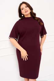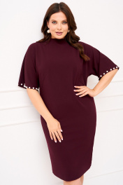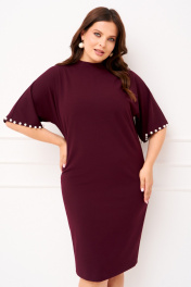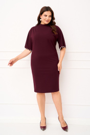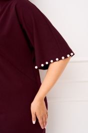 Платье женское полуприлегающего силуэта, по спинке застежка-молния; по низу рукавов декоративные бусины - жемчуг.