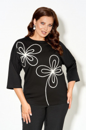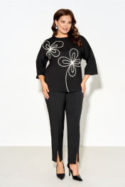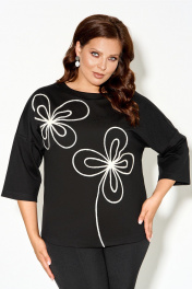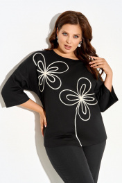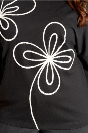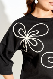 Джемпер свободного силуэта выполнен из мягкого трикотажа, рукава со спущенной лилией плеча, горловина округлой формы, по переду и спинке - декоративная вышивка.