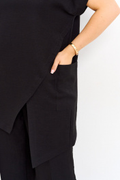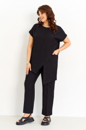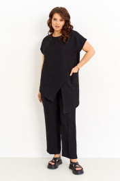 Костюм женский, состоящий из туники и брюк, выполнен из натурального льна (не колется). Туника свободного силуэта, низ изделия ассиметричнной формы с накладным фукциональным карманом, спинка с акцентным треугольным вырезом. Брюки классические полуприлегающего силуэта заужены к низу, по переду стрелки, в боковых швах функциональные карманы, пояс притачной полностью на резинке. Костюм соответсвтует заявленному размеру. Пользуйтесь таблицей замеров готового изделия. Уход за натуральными тканями: - рекомендуется бережная стирка при температуре 30 градусов; - глажение при температуре прессующей поверности не выше 110 градусов.