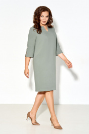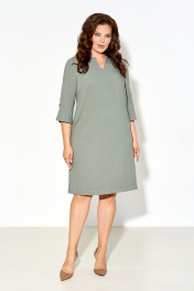 Демисезонное женское платье с округлым вырезом и пуговицами IVA 1630 хаки