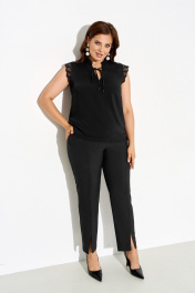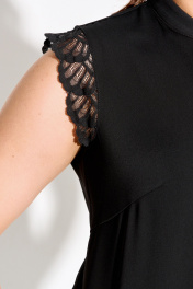 Базовая женская блуза с воротником и кружевом из текстиля IVA 1687 черный