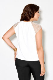 Женская базовая блуза полуприлегающего силуэта выполнена из лёгкой струящейся ткани. Рукава реглан, плавно переходящие на спинку и перед, выпонены из кружева; горловина окантована; по переду небольшой декоративный разрез. Блуза полностью соответствует заявленному размеру. Пожалуйста, пользуйтесь таблицей замеров готового изделия . Уход: - рекомендуется машинная стирка при температуре не выше 30 градусов, выбирайте деликатный режим стирки. длина изделия в базовом размере, см 56 (размеры 50-54), 58 (размеры 56-60) длина рукава в базовом размере, см ширина плеча + длина рукава - 18 (размеры 44-48), 19 (размеры 50-54)